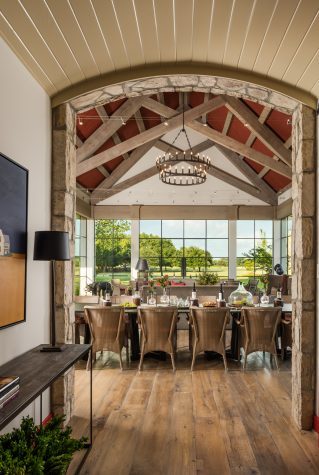 Pretty as a painting, I just can’t get over the red. Definitely dramatic and so unique, what a perfect treatment for this ceiling. Look at the beautiful barn. This project, deep in the heart of Texas is by Sandy Lucas and her team.