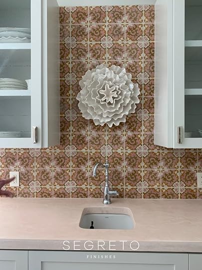 This SegretoStone blush counter is such a perfect match to this beautiful tile backsplash! You know me-I love PINK!