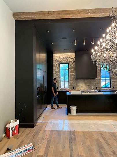 This is a Harvey home in which these wonderful homeowners have just been able to move in. It has been a long journey. The black plastered walls have a mirror-like finish. Just the right treatment for the dramatic elements that designer Julia Blailock has in store for this beautiful room.