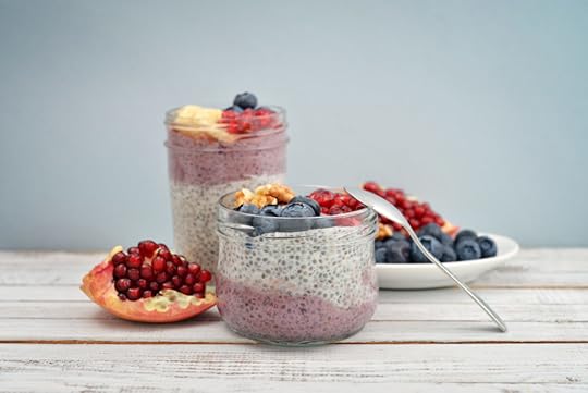 I also fell in love with chi pudding. Just by the name I am not sure it is whole 30 approved. You just mix one can of whole organic coconut milk with a bit over a fourth of a cup of chi seeds. Add more seeds if you like the pudding thicker. Put it in a container overnight. I like to put fruit, almond and coconut shavings on top. You can also mix the milk with fruit or cashew butter in the nutra-bullet, before the seeds are added to give it a different taste. I did have a 25th birthday dinner for my daughter Sammy and I made little parfait desserts, layering different combination of mixtures.