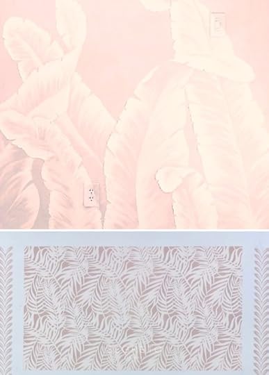 If I was Malibu Barbie, I think I would want my house to have this vibe! Raised gesso palms over a plaster base!! Being in cool tones of the ocean or could be pretty in pink! Make it extra special by creating a paneled effect on the bottom with a hand-painted stencil like these examples in our showroom!!