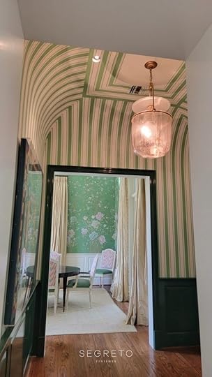 Segreto ShowroomWe have been working with Kristal Dayal with Krystal Michelle Designs on a mural for a powder bath she is working on! I am so excited about using a Dior scarf as inspiration!