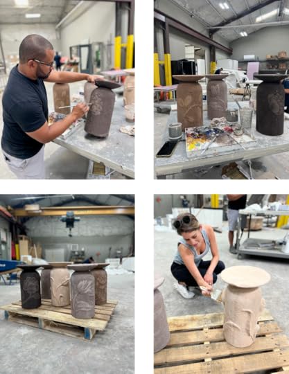 We first, hand sculpt a piece using clay and plaster. Then we use our new elaborate scanning equipment to create a cad file from which our 3D cutting equipment creates a mold from. These are used to create the concrete table substrates as our base. Just the molds could be art!
