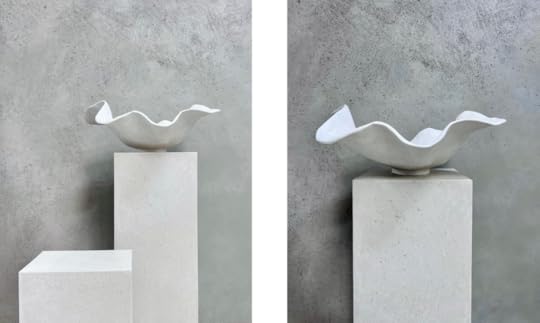 This is from our “Groovy Art Series” which we created from plaster! This particular piece coated in a soft neutral blush, it would beautifully fit in in any color palette or any pattern! Yes! Our art gallery is back in our new showroom!! I love having the space to showcase our staff’s creative endeavors!!