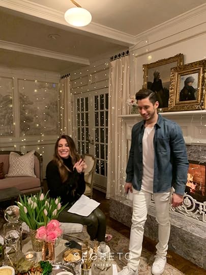 Everyone got little table gifts of handmade chocolates, plus cigars for the guys and heart-shaped wine openers for the girls. I used my china and placemats from Vietri, flatware from Neiman Marcus (currently on sale!), Dorothy Thorpe mid-century glasses gifted from my mother, and wine glasses from Anthropologie! I couldn’t find the chargers still on sale, but here is another option from Amazon. If you are not a pink gal like me, and this is a one time event, I found some pretty plastic ones from Posh Setting.