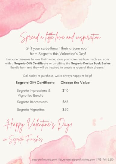 Gift your sweetheart their dream room from Segreto this Valentine’s Day. There is nothing better than spreading a little love! Till next time! XO Leslie