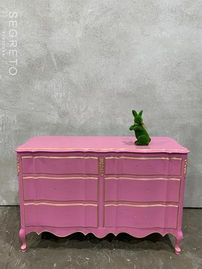 I took my cute moss bunny to work one day! She loved this pink and gold chest which is a childhood set of a homeowners which we refinished to go in her daughter’s room!! All it needs is the new hardware installed!!