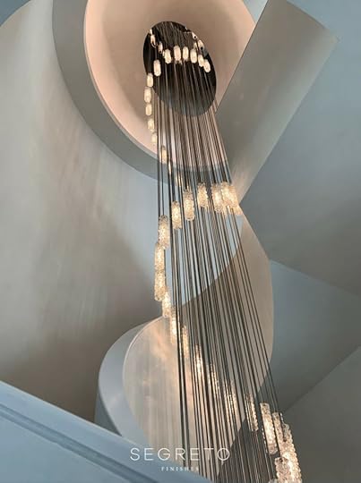 The breathtaking custom chandelier took weeks to hang, and well work the effort, creating a dramatic art piece against the plastered walls in Flake White from our Segreto Palette Deck.