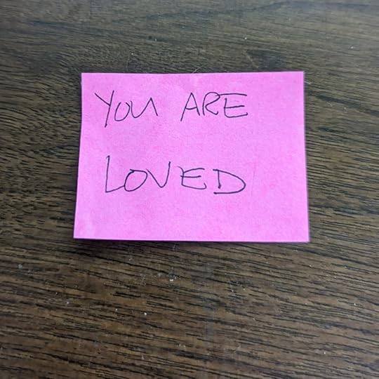 “I am loved,” I said, sitting on the floor underneath my desk, the fan of my server quietly blowing warm air across my feet. “Thank you, past me, for the reminder. I don’t need it today, but maybe someone else does, and I’m going to post this for them.”