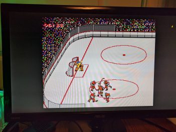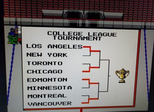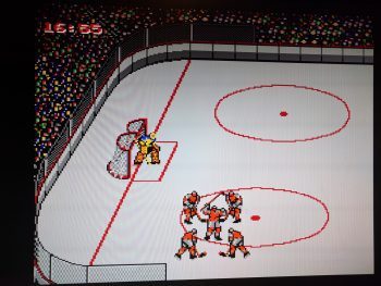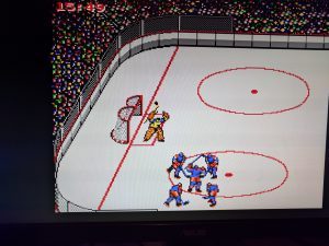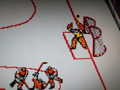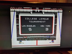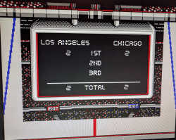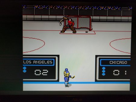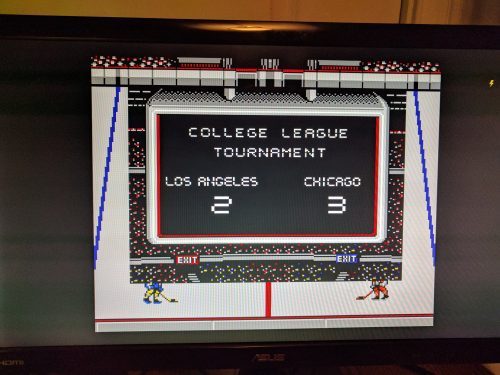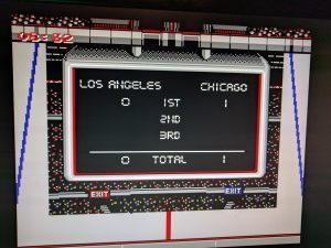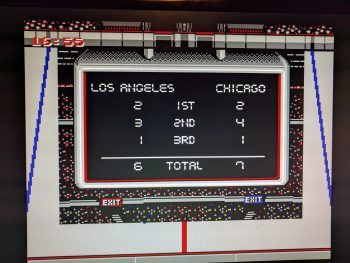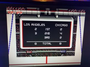 Less than one minute later, Chicago tied the game again, when the Los Angeles Guy couldn’t get the goddamn puck behind his own net for some reason, even though the goalie should have been able to pick it up and pass it to him, leading to the Chicago guy passing to the other guy who passed to the other guy who passed to one more guy for a quick shot that the goalie never saw because his entire team was trying to figure out where the hell the puck was. Los Angeles fought back — literally — but didn’t score on any of their power plays, allowing Chicago to take the lead back with a goal that the Los Angeles goalie was pretty sure he had, because the arrow was next to the post and he had position so he should have made the save, but collision detection wasn’t as precise in the 80s as it is now I guess.