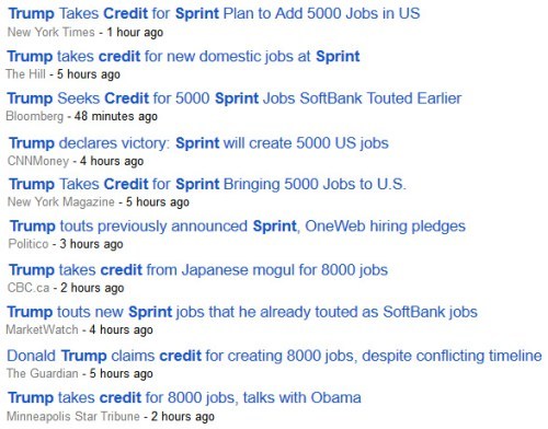 If you turned on the news yesterday, you probably heard this story about Donald Trump taking a phone call from executives at Sprint, working that Make America Great Again magic, and hanging up the phone with the promise of Sprint creating 5000 jobs for Americans. Trump says that “Because of what’s happening and the spirit and the hope I was just called by the head people at Sprint and they’re going to be bringing 5,000 jobs back to the United States.”