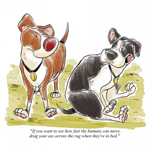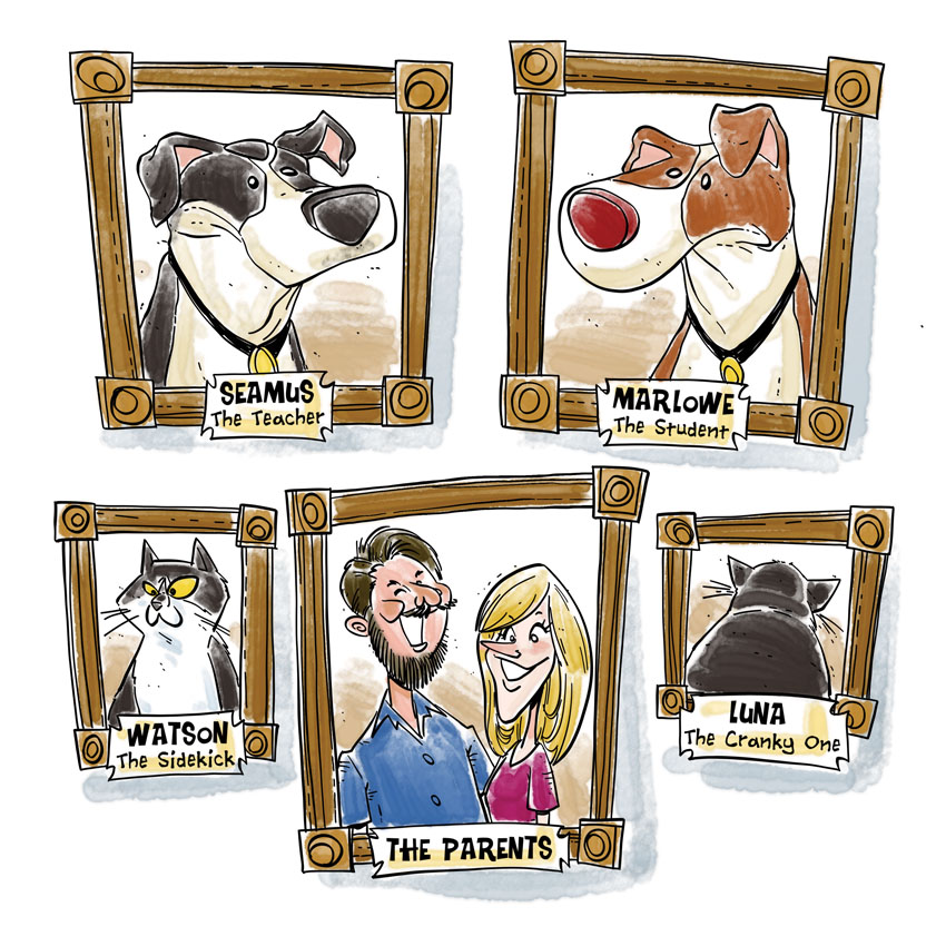 I asked our friend and amazing artist, Lar deSouza, to do the illustrations, and he happily obliged. He captured the personalities of Seamus and Marlowe perfectly, as well as the personalities in the cameos of our cats, Watson and Luna. As cute as this book is, I would not categorize it as a children’s book, unless you’re okay with your children reading about “taking a shit on the patio” or “dragging your ass across the rug.” But that’s your parenting call. The majority of the book is not like that, but I thought it best to warn you.