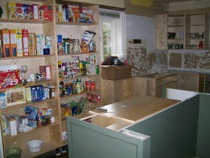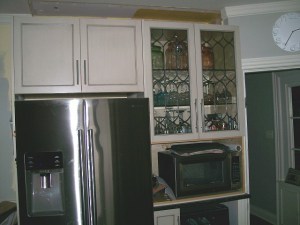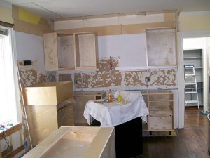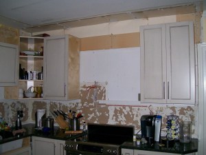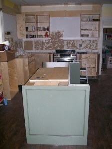 Reassembly begins…with the shorter cupboards, but at this point, any cupboards were good to have, even temporarily.