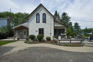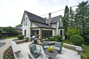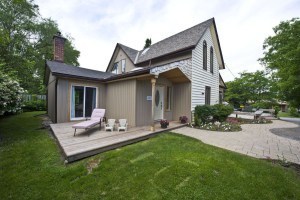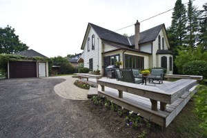 First, my quirky little house from the outside. Some of these pics were taken by the real estate agent through a fisheye lens so they look a little skewed. But you can get the general idea.
