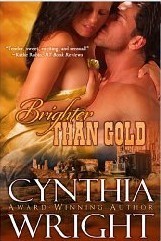 A happy, relaxing Sunday to all. For a treat today I’m posting an excerpt from a good friend of mine, Cynthia Wright. She climbed aboard the self-pubbing wave about a year ago along with the rest of us clever, independent, quick-thinkers and started reissuing her backlist as ebooks. She has some gorgeous covers (no, I didn’t do them, but that’s okay, I still like her *snort*) and some terrific books so if you haven’t tried Cynthia yet, here’s a sample from her stand alone Western, Brighter Than Gold.