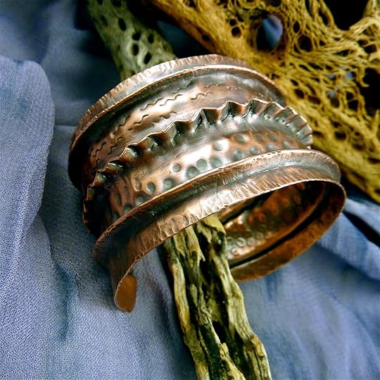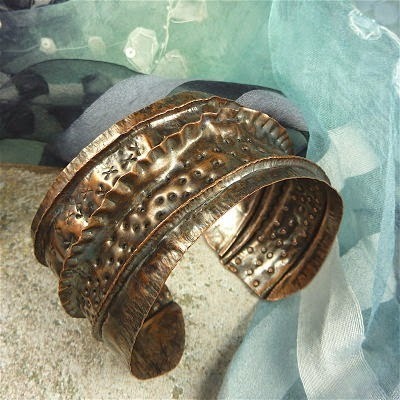 We're going to spend a full day on foldforming. The cuff pictured above is a complex design (thank you to Louise Duhamel for teaching me how to make big cuffs!), with lots of foldforming, hammering, and texturing with hammers and chasing tools.