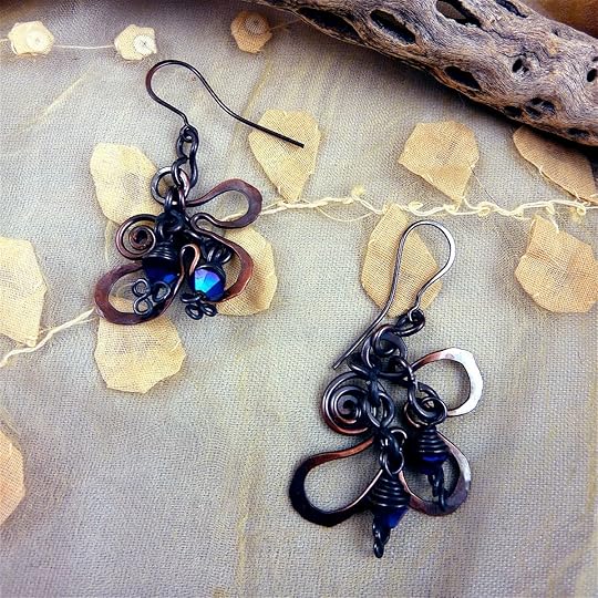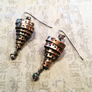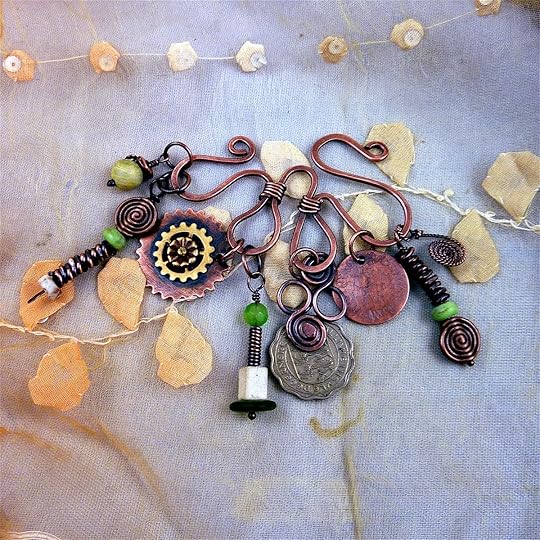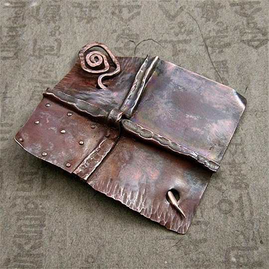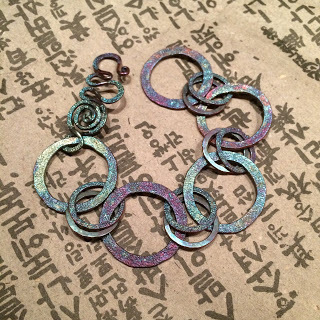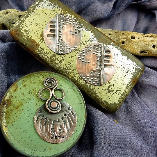 Over the course of three days we explored lots of techniques including metal etching, distressing, forging and foldforming copper sheet, torch enameling, a variety of wire wrapping techniques, and making components for jewelry. It's impossible to describe in detail everything we learned, but the following pictures of our work will give you some idea...