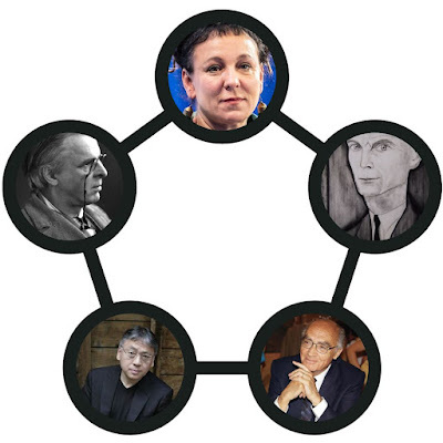 2017: Kazuo IshiguroIshiguro, "who, in novels of great emotional force, has uncovered the abyss beneath our illusory sense of connection with the world," is probably most widely known for The Remains of the Day. His When We Were Orphans is, like Tokarczuk’s Drive Your Plow… is in the form of a mystery story, which always doubly endears me to a work of literature.