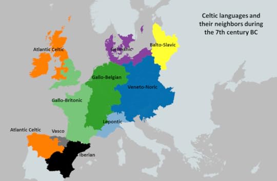 In the 7th century BCE, Celtic languages were spoken all over Europe. In the map, you can see the area of Transalpine Gaul, north of the Alps, spoke Lepontic. The Gaulish area on the Italian side of the Alps is called Cisalpine Gaul.