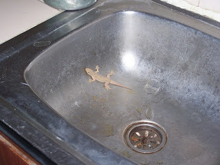 Last night on my way to bed, I stopped off in the kitchen to wash out the mug I'd been drinking tea from. Without looking, I walked over and poured the remaining liquid into the sink. This was followed by a terribly unladylike shriek when a lizard actually jumped from within the basin.