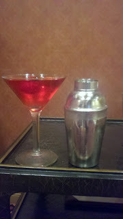 It was unlike any chocolate martini I've ever had before. I expected it to come out looking chocolately and was a little disappointed at the appearance. All was forgiven after my first sip. Oh, and that is a Hershey Kiss in the bottom of the glass.I decided to branch out after this, turning my attention toward the Raspberry Cosmo. Again, I was not disappointed.