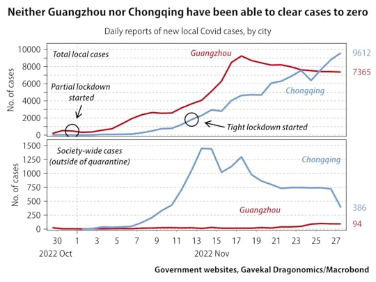 By the end of November it was clear that the outbreak in the two megacities of Guangzhou and Chongqing could no longer be contained. Both cities had adopted aggressive lockdown strategies but the case load was no longer reacting.