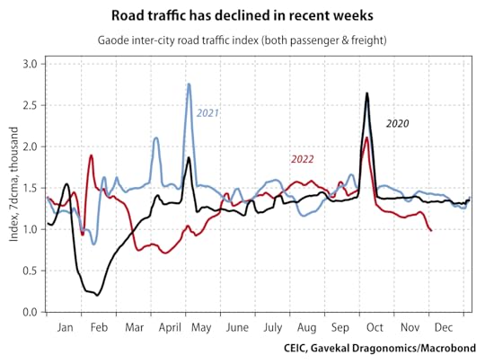 The impact of the Omicron lockdowns in 2022 was doubly damaging, threatening to disrupt the export supply chains and to intensify the depressed mood in the housing market. But the basic pattern of China’s economic development was set by exports and housing and not by the debacle of COVID policy. The road traffic index shows a significant slowdown in March and April 2022 which reflects the Shanghai lockdown. But from June until October it closely tracked previous years. Only in October did the new wave of lockdowns begin to bite in earnest.