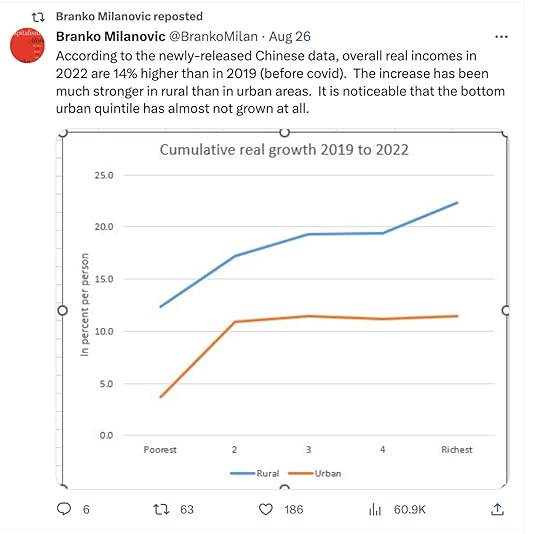 If you look at overall growth data for the period 2019 to 2023 as Branko Milanovic recently did in the course of inequality research you see the following