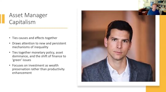 Check out the video by Daniela Gabor for the most comprehensive answer. But in brief, asset manager capitalism is a structure of power. It is interwoven with policy. It has expanded at the same time as central bank asset purchases (QE) have become the key tool of macro-policy. It is, as Daniela has show, expanding the frontiers of financialization into every area of life. Asset managers need yield. They get yield by financializing everything from real estate to natural capital. And this is capitalism. As Mark’s video at the top spells out, it is interwoven with social structure, inequality and class.
