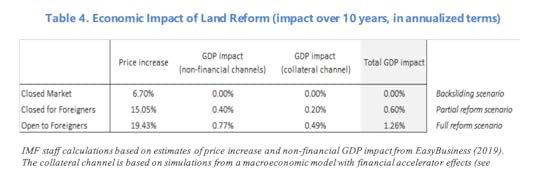 By the World Bank’s calculations it should increase rental income to small landowners by $3 billion every year. It will also give rural residents and small farmers, $24 billion of collateralizable assets that allow them to invest in irrigation, horticulture or non-agricultural small enterprises. In additional local taxation the World Bank estimates $2 billion annually.
