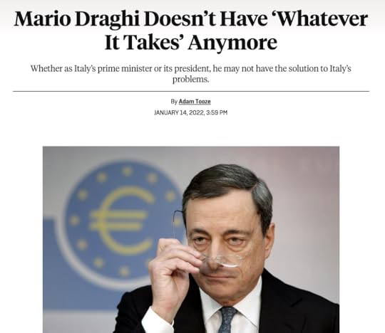 The pessimists will say that the structures are entrenched and heavy and hard to move. You can’t accelerate Italy’s growth with a sprinkle of Draghi’s fairy dust and a bit of administrative reform. See this critical write-up of the Draghi project by Thomas Fazi and Paolo Cornetti. On Italy’s organic crisis, see also this piece by Fazi. And this remarkable write-up, also by Fazi, on the eternal return of technocratic government in Italy. In a short piece on the 2018 crisis, Wilkinson takes up Fazi’s concept of an organic crisis.