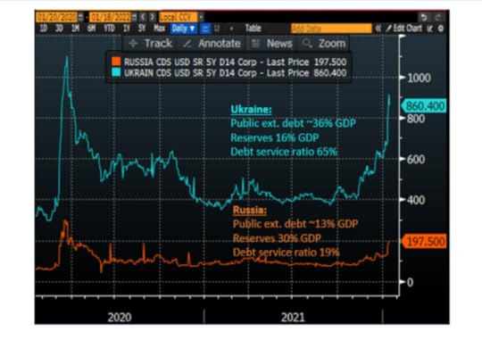 and Ukraine where Credit Default Swaps (the cost of insuring government debt) are exploding…