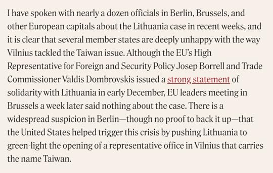 After @noahbarkin reported that Berlin believed that Lithuania was an eager tool of US policy v. China (with eye to Russia) gmfus.org/news/watching-…