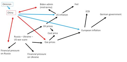 China also, however, poses another risk, by way of the unpredictable spread of Omicron. This could inflict further disruption on global supply chains transmitting a further supply-side shock and inflationary impulse directly to the US and Europe. This further expands our Krisenbild.