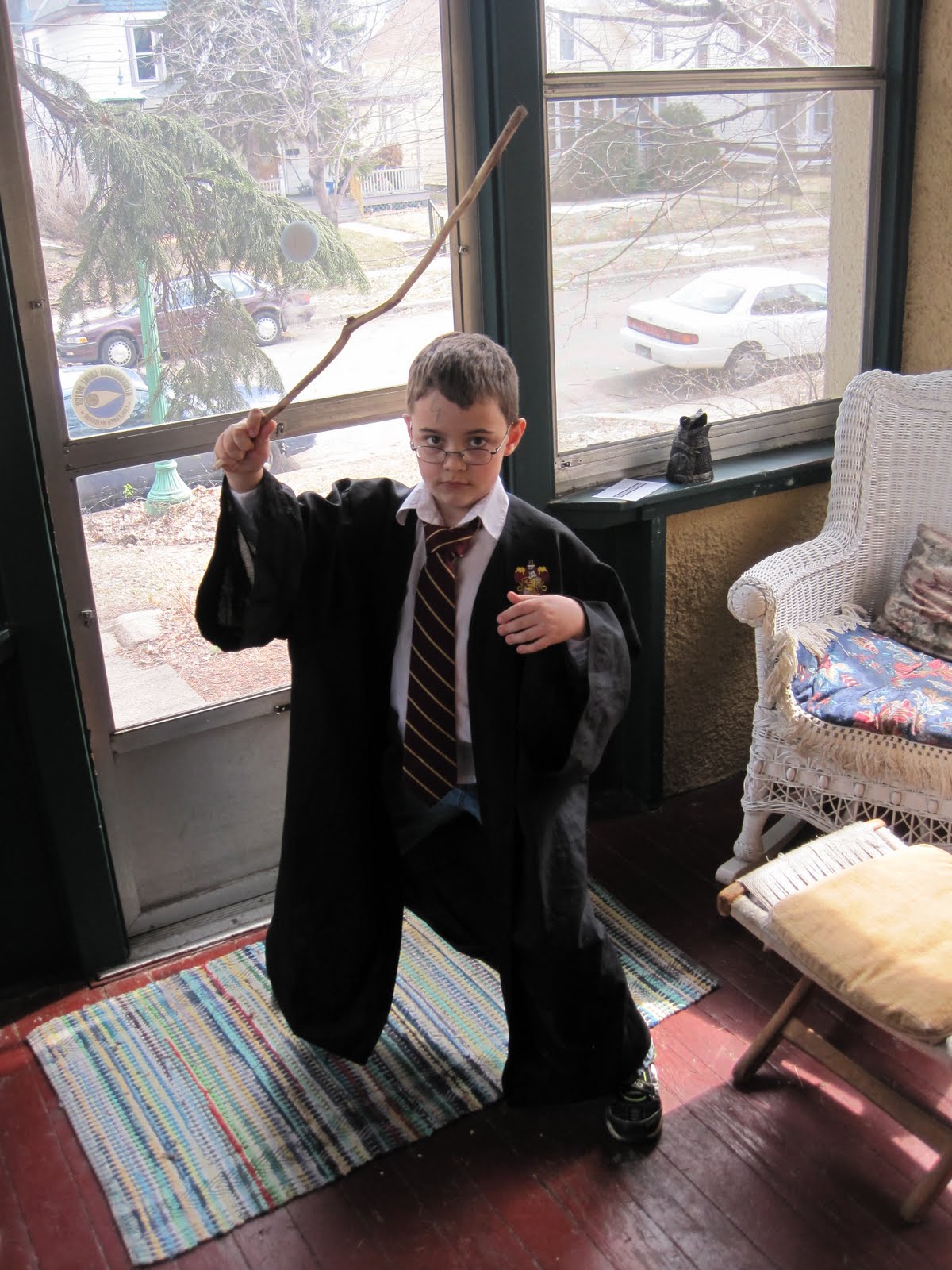 I want to post a few pictures of my cute kid at a Hogwarts themed birthday party this weekend. Here's my little wizard on our porch.