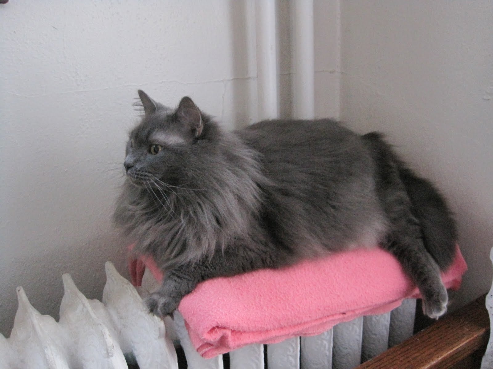 Kelly McCullough posts pictures of his cats every Friday over at Wyrdsmiths, and, I feel like being a copy cat today. Here's my Ms. Piggy enjoying the radiators of fall.