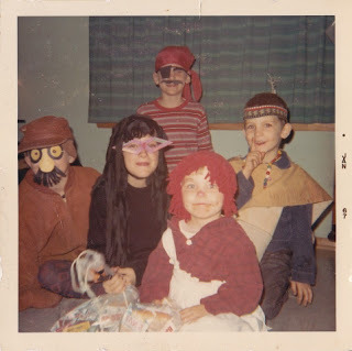 My mom had a creative, make-something-out-of-nothing gift when we were growing up and still does today. To celebrate the first of October, here's an example of our Halloween costumes. I was the particularly raggedy Raggedy Andy. : )