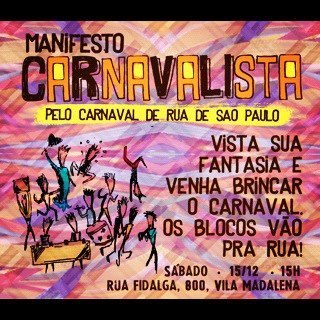 ALÔ COMUNIDADE! NOSSO BLOCO ASSINA E APOIA O MANIFESTO CARNAVALISTA – O PRIMEIRO PASSO PARA BOTARMOS OS BLOCOS NA RUA! DIA 15/12 VAMOS TODOS NO FESTA MANIFESTO QUE ROLA NA VILA MADALENA PELA LIBERAÇÃO DO CARNAVAL DE RUA DE SP! SE LIGA! TAMO JUNTO! APAVOOOOOORA!