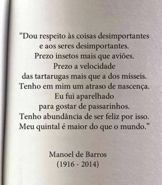 “Não sou bom entendedor das coisas grades. Mas… menos ainda, das coisas pequenas.”