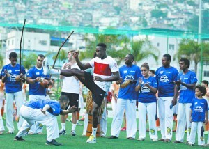 Neuer e Schweinsteiger, da Alemanha, aprendendo com torcedores baianos o hino do Bahia: