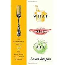 Then there are the many tomes of those doughty Food Writers, the late M. F. K. Fisher, the late Elizabeth David. More contemporaneously, I find that Laura Shapiro’s books about food and women’s lives never fail to both enlighten and entertain. I have loved her work since her first book, PERFECTION SALAD some thirty years ago. Her most recent WHAT SHE ATE reflects on the importance of food in the lives of six particular women, beginning with Dorothy Wordsworth in the 1790’s and coming to Helen Gurley Brown of 1960’s COSMOPOLITAN fame, who, it seems, lived entirely on sugar-free Jello so as not to gain weight. Shapiro’s witty prose is seasoned with lively insights; all her books can be read time and again just for pleasure.