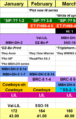 Today’s all about setting up my calendar. I have a spreadsheet prepared with all the work I hope to complete. I know I’ll be deleting things as I run into snags, but I always like to plan “big”. Here’s a little snippet from my annual plan.