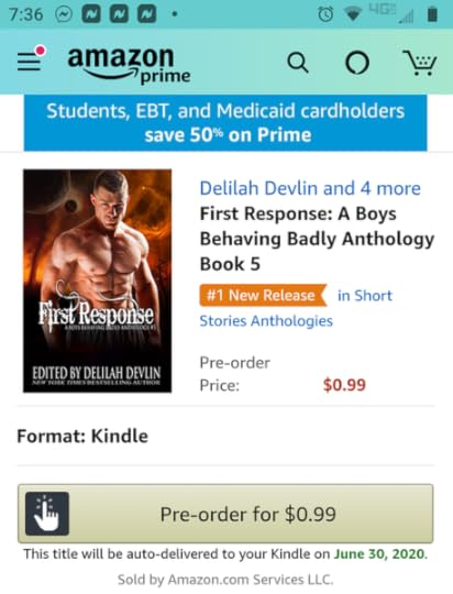 For my giveaway, let me know if you like the “fated mates” trope, where characters have one and only one mate for them (and often they know it and can’t fight it for long). I’m giving away 2 electronic copies of the anthology – First Response (given on release day) – and 2 $10 gift cards to Amazon.
