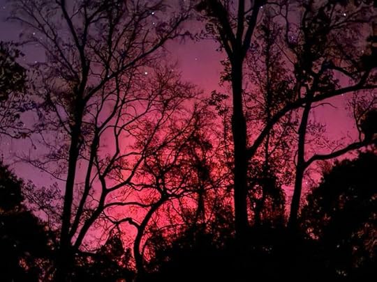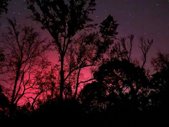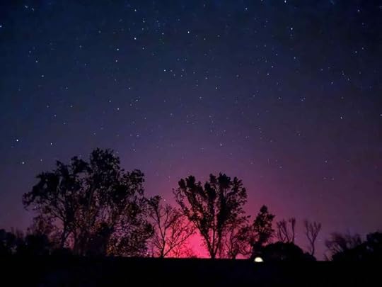 I live in south-central Arkansas. We rarely see the aurora borealis. When it appears this far south, you can’t see it well with the naked eye, and it’s always the blue-green lights. Last night, we were treated to quite a show. I’m sharing photos taken from my property of a lovely magenta to pink Northern Lights display. This is actually the first time I can recall seeing the lights in my lifetime, so you know I was excited!