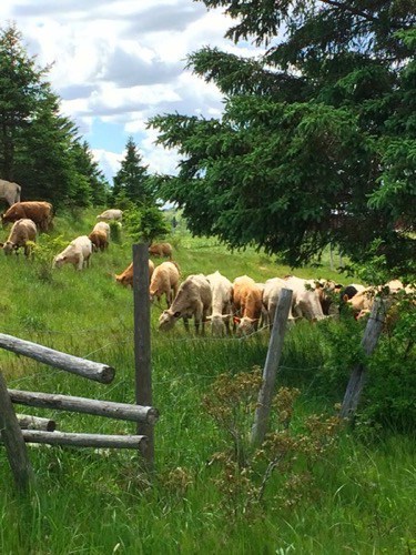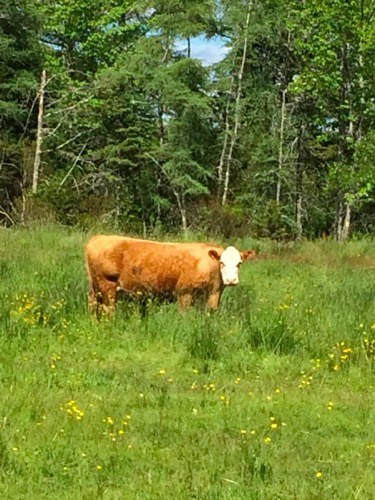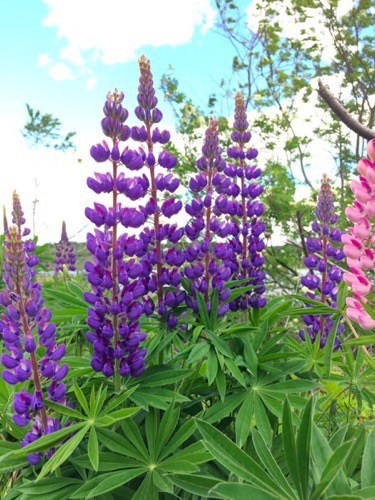 The larger of the two deer, along with a herd of cattle who quickly became bored with our presence. The lupines are starting to bloom and I revel in the many shades of blue and purple they display. Finally, one of our neighbours welcomed us home.