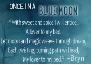 Once in a Blue Moon is the first of five stories. The first two are written. Under a Blood Moon is coming next month and features creatures of the sea. After that, well, you’ll have to wait and see, but the next story will include wolves… Each of the five witches in this small coven represents a different Element: Earth, Water, Fire, Air, Spirit. And they have a host of demons wooing and stalking them, because in my world, witches are precious, the keys to power.