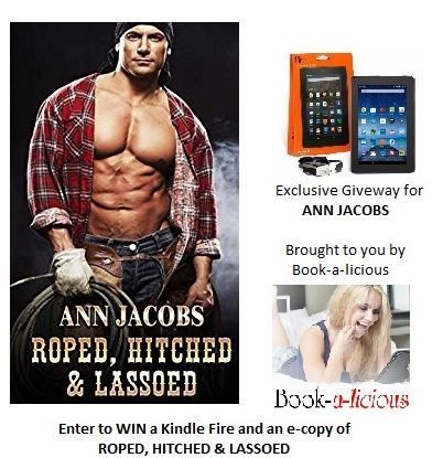 I will be running an exclusive giveaway through Book-a-licious.com from July 10 to July 21. There will be one grand prize of a Kindle Fire and the complete e-set of Roped, Hitched & Lassoed. Five more e-copies of the set will go out to the runner ups. Here is the direct link: https://app.viralsweep.com/sweeps/full/e80abe-21399&framed=1. Winners will be announced on Saturday, July 22.