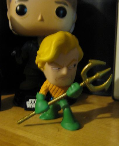The worst gift? I really didn’t get a worst gift. But if I had to choose, it would be the little Aquaman figurine (standing in front of my new Han Solo!), because I can’t wait for Jason Momoa’s Aquaman, and he’s not blonde, not wearing green tights, but hey, this one’s funny, right?