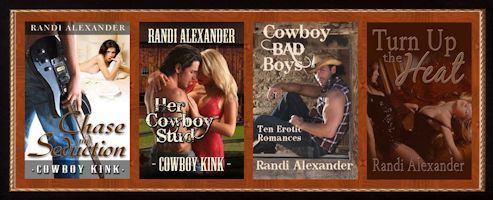 -Turn Up the Heat, Chase and Seduction, and Her Cowboy Stud are available at The Wild Rose Press and Amazon