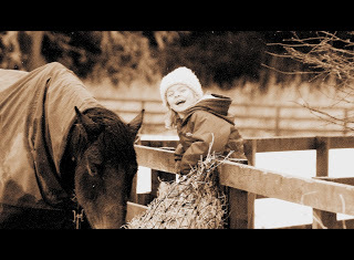 The mares are obviously highly trained, so I trust them around small people, but really it is more their good heartedness than my dedicated schooling that digs the trust deep. The red mare in particular is an absolute goof for children. She goes very still and blinks her eyes at them and exudes peace and pleasure.